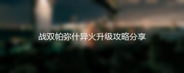 以上就是为大家带来的战双帕弥什异火升级攻略分享。通过合理配置装备、参与激活副本、利用异火精炼石、培养合适的队伍以及参与异火争夺战等方法,玩家可以有效提升异火的能力,在战双帕弥什中取得更大的成就。