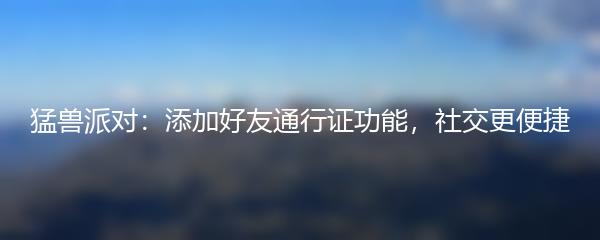 猛兽派对是一款备受欢迎的社交应用,近日引入了全新的功能——添加好友通行证。这个功能的加入将为用户的社交体验带来更便捷和更多可能。在这篇文章中,我们将详细介绍猛兽派对的添加好友通行证功能,以及它给用户带来的好处。