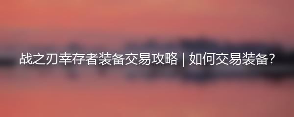 战之刃幸存者装备交易攻略 | 如何交易装备?