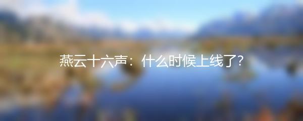 燕云十六声:什么时候上线了?