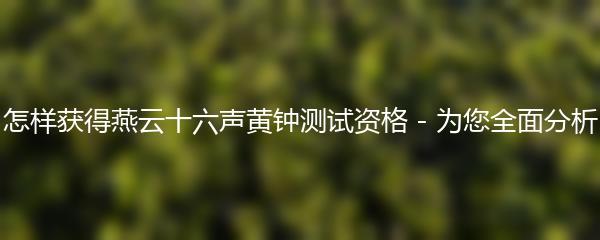 怎样获得燕云十六声黄钟测试资格 - 为您全面分析