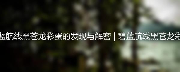 碧蓝航线黑苍龙彩蛋的发现与解密 | 碧蓝航线黑苍龙彩蛋