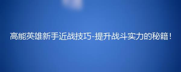 高能英雄新手近战技巧-提升战斗实力的秘籍!