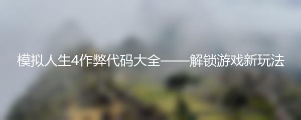 模拟人生4是一款非常受欢迎的生活模拟游戏,而作弊代码则为玩家提供了更多的游戏乐趣。在本文中,我们将为大家提供模拟人生4作弊代码大全,让你轻松解锁游戏中的新玩法。