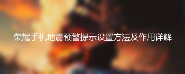 以上就是为大家带来的荣耀手机地震预警提示设置方法及作用的详细介绍。地震是一种不可预测的自然灾害,荣耀手机的地震预警提示功能为用户提供了重要的安全保障。大家在使用荣耀手机时,务必要设置并开启地震预警提示功能,及时了解地震信息,做好自身的安全防护。