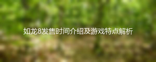 如龙8的发售时间引起了广泛的关注,这款游戏的特点也让人充满期待。如龙8将带给玩家们无尽的冒险和刺激,让我们一起期待这款游戏的到来!