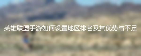英雄联盟手游是一款备受玩家热爱的手机游戏,其丰富的游戏内容和刺激的战斗模式吸引了无数玩家的狂热追捧。在游戏中,设置地区排名可以帮助玩家与同地区的强者一决高下,争夺排行榜的榜首位置。下面我们来介绍一下如何设置地区排名,以及这种设置方式的优势和不足。