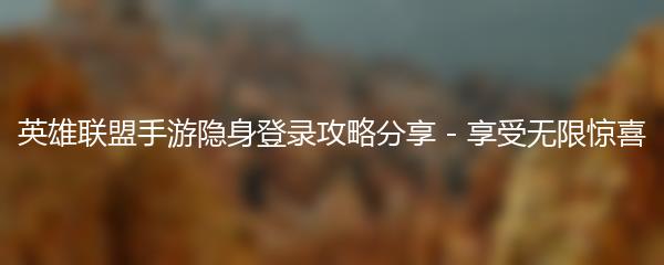 英雄联盟手游隐身登录攻略分享 - 享受无限惊喜