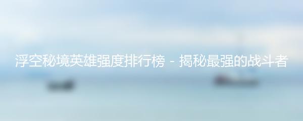 以上就是为大家带来的《浮空秘境英雄强度排行榜 - 揭秘最强的战斗者》的内容。在这片神秘的土地上,只有真正的英雄才能获得荣耀和胜利,成为浮空秘境中真正的统治者。
