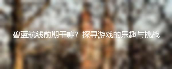 碧蓝航线前期干嘛?探寻游戏的乐趣与挑战