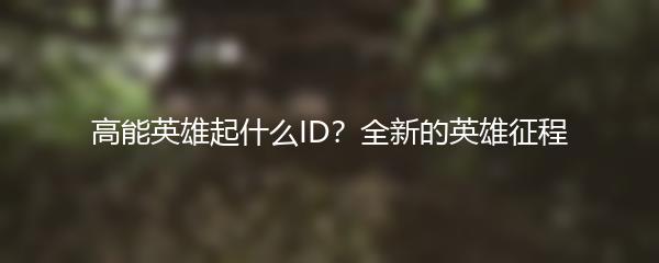 以上就是为大家带来的“高能英雄起什么ID?全新的英雄征程”!希望这篇文章能够给大家在选择高能英雄ID方面提供一些启发和帮助。