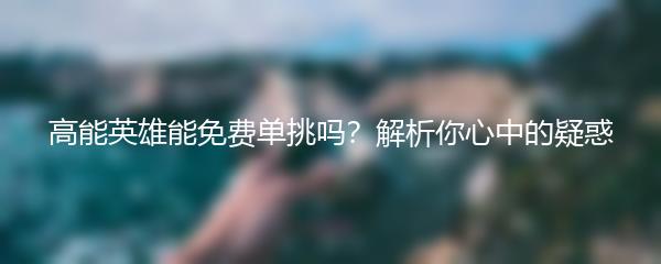 高能英雄能免费单挑吗?解析你心中的疑惑