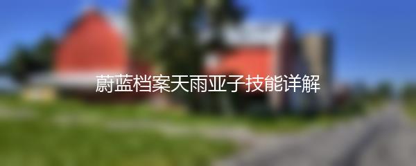 蔚蓝档案是一款备受瞩目的游戏,其中天雨亚子是其中一名备受关注的角色。天雨亚子技能是什么呢?本文将为大家详细介绍天雨亚子的技能,让大家更好地了解这个角色。