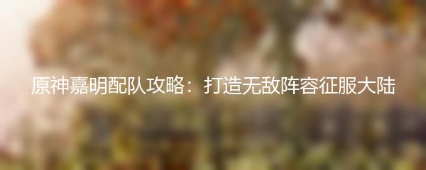 原神是一款风靡全球的开放世界冒险游戏,玩家可以通过组建不同的角色配队,体验多样化的战斗和冒险。在众多角色中,嘉明的强大实力备受玩家们的喜爱。本文将为大家分享一些原神嘉明配队的攻略,助你打造无敌阵容征服大陆。