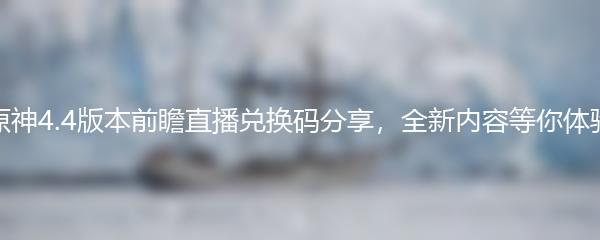 以上就是为大家带来的原神4.4版本前瞻直播兑换码分享。无论是新地图、新增角色,还是游戏优化和全新机制,都将为你带来不一样的游戏体验。快来参与我们的直播兑换码分享活动,与其他玩家一同探索4.4版本的新世界吧!