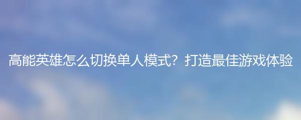 高能英雄怎么切换单人模式?打造最佳游戏体验