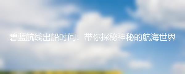 碧蓝航线出船时间是很多玩家关注的话题。作为一款热门的航海冒险游戏,碧蓝航线吸引了无数玩家的关注和喜爱。今天,我们将带你深入探索这个神秘的航海世界,并解答你心中的疑惑。