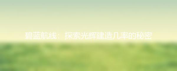 众所周知,光辉在碧蓝航线中的建造几率非常低,很多玩家为了获得这艘强力的船只付出了巨大的努力。但究竟光辉的建造几率是多少呢?通过对游戏数据的分析,我们可以得出一些有价值的结论。