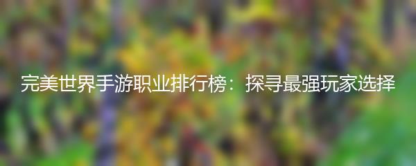 以上就是为大家带来的“完美世界手游职业排行榜:探寻最强玩家选择”的介绍。希望对你有所帮助,祝你在完美世界手游中取得辉煌的战绩!