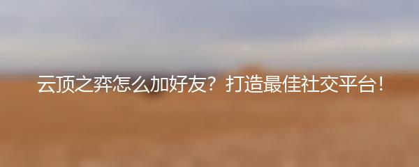 云顶之弈是一款风靡全球的自走棋游戏,拥有众多忠实玩家。在游戏中加入好友,不仅能够增加游戏乐趣,还能够与其他玩家交流心得和战术。那么,云顶之弈怎么加好友呢?下面为大家介绍打造最佳社交平台的方法。