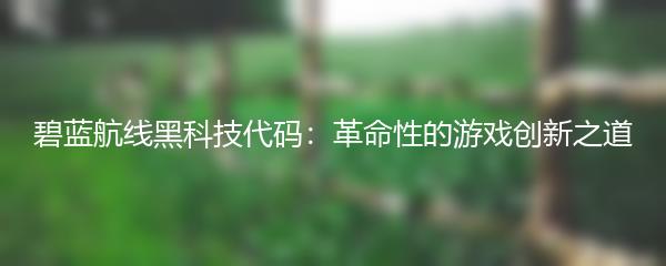 碧蓝航线黑科技代码:革命性的游戏创新之道