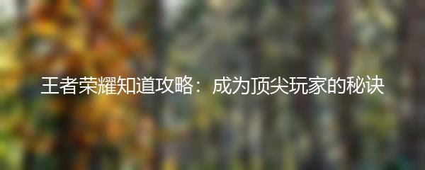 王者荣耀知道攻略:成为顶尖玩家的秘诀