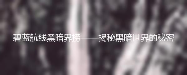 碧蓝航线黑暗界捞——揭秘黑暗世界的秘密