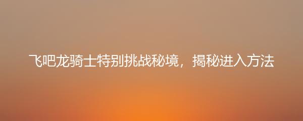 想要成为一名真正的飞吧龙骑士?那就来挑战特别秘境吧!在这里,我们将为大家揭秘进入秘境的方法,让你成为顶级龙骑士的同时,尽情享受冒险的乐趣。