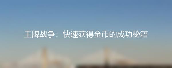 王牌战争是一款备受玩家青睐的游戏,想要在游戏中取得优势,获得大量金币是至关重要的。本文将为你揭秘快速获得金币的成功秘籍,助你在王牌战争中稳步发展。