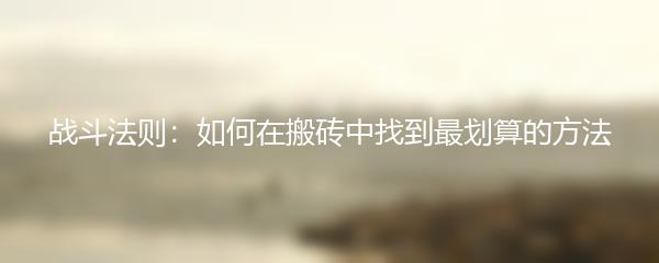 以上就是为大家带来的战斗法则:如何在搬砖中找到最划算的方法。在选择适合自己的工作、培养技能、保持积极心态、与他人合作、保持良好的工作态度等方面,都是我们在搬砖过程中需要注意的关键点。只有掌握了这些战斗法则,我们才能在激烈的竞争中脱颖而出,并在搬砖中找到最划算的方法。