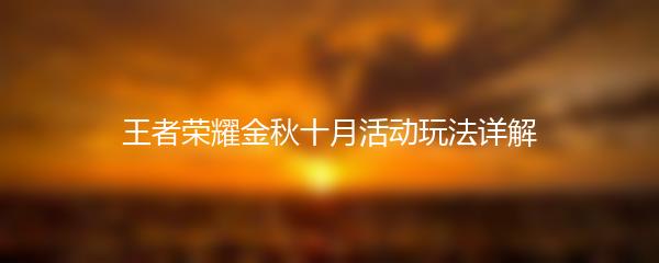 以上就是为大家带来的王者荣耀金秋十月活动玩法详解。在这个金秋十月,快来参与活动,收获更多的游戏乐趣和丰厚奖励吧!