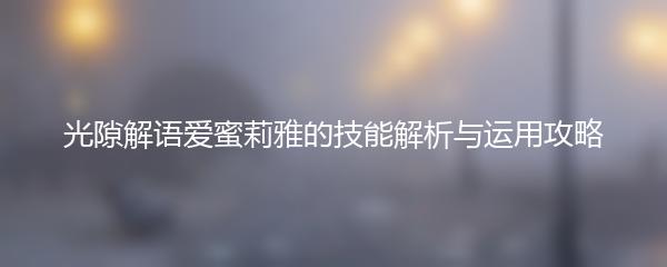 光隙解语爱蜜莉雅的技能解析与运用攻略