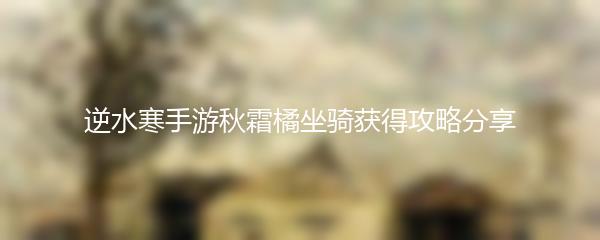 逆水寒手游秋霜橘坐骑获得攻略分享