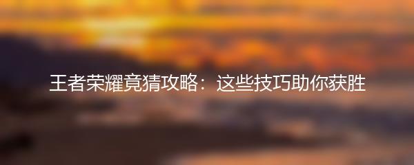 王者荣耀是一款极具竞争性的手机游戏,玩家需要在对战中展现出自己的实力和智慧,才能取得胜利。本文将为大家分享一些王者荣耀竟猜攻略,帮助玩家在比赛中获得优势。