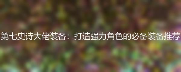 第七史诗大佬装备:打造强力角色的必备装备推荐