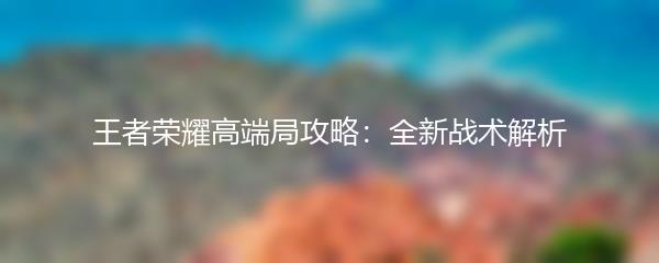 王者荣耀是一款备受玩家喜爱的手机游戏,其中高端局的对战更是充满了挑战和激烈的竞争。在这篇文章中,我们将为大家带来全新的王者荣耀高端局攻略,揭示一些全新的战术解析,希望能够提升大家在高端局的游戏实力。