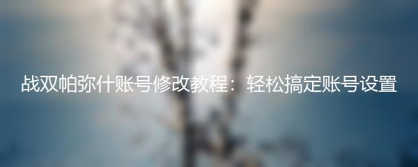 战双帕弥什是一款热门的手机游戏,许多玩家在游戏中可能会遇到需要修改账号的情况。本文将为大家介绍如何轻松修改战双帕弥什账号设置,让你的游戏体验更加顺畅。