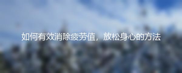 以上就是为大家带来的如何有效消除疲劳值,放松身心的方法。希望这些方法能够帮助你更好地管理疲劳感,拥有充满活力的生活!