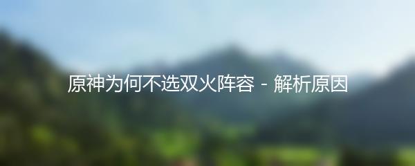 以上就是为大家带来的《原神为何不选双火阵容》的解析内容。希望能为各位玩家提供一些启示和思考。