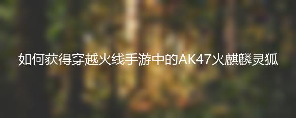 如何获得穿越火线手游中的AK47火麒麟灵狐