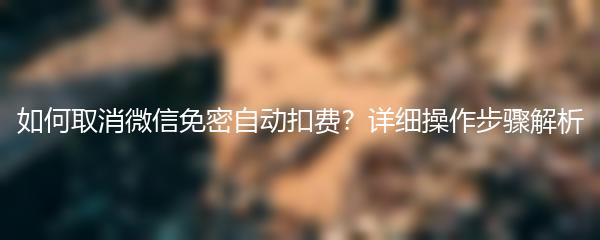 如何取消微信免密自动扣费?详细操作步骤解析
