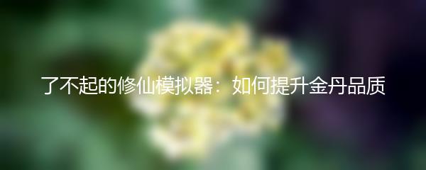 以上就是为大家带来的“了不起的修仙模拟器:如何提升金丹品质”的相关内容。在游戏中,玩家可以通过增加修炼时间、改善修炼环境、提升修为等级、寻找灵宝宝物和寻找师父指导等方法,来提高金丹品质。只有不断努力修炼,才能在修真世界中取得辉煌的成就!