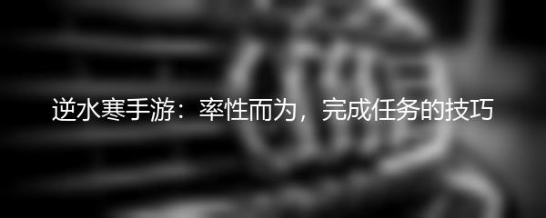 以上就是为大家带来的《逆水寒手游:率性而为,完成任务的技巧》。希望这些技巧能帮助到各位玩家,让大家在逆水寒手游中更好地完成任务,享受游戏乐趣。