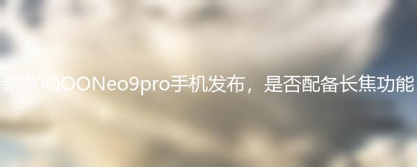 近日,一款备受期待的新款智能手机——iQOONeo9pro正式发布。用户们最为关注的问题之一就是,这款手机是否配备了长焦功能。通过对iQOONeo9pro的详细了解,我们将为大家揭晓答案。