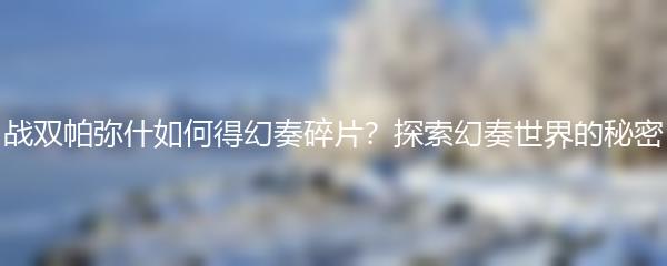 战双帕弥什是一款热门的角色扮演游戏,玩家扮演着勇敢的战士,与强大的敌人展开激烈的战斗。在游戏中,玩家需要收集各种珍贵的道具,其中最为重要的就是幻奏碎片。那么,战双帕弥什如何能够得到幻奏碎片呢?