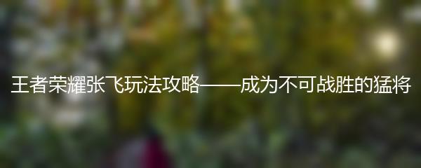 王者荣耀张飞玩法攻略——成为不可战胜的猛将