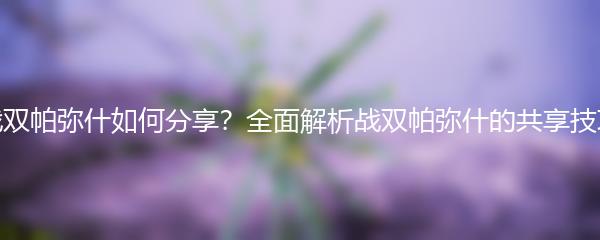 在战双帕弥什中,共享技巧是玩家之间分享并学习的一种方式。通过共享技巧,玩家可以相互帮助,提高自己的游戏技能。共享技巧可以包括战斗技巧、装备选择、关卡攻略等方面的知识。