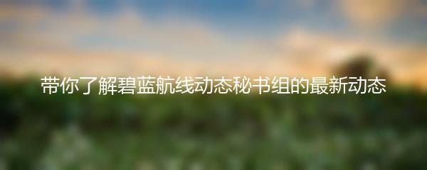 碧蓝航线动态秘书组是一支为我们带来最新动态的重要团队。他们以航线运营为核心,为游戏玩家提供各种精彩活动和更新消息。今天我们就来了解一下碧蓝航线动态秘书组的最新动态。