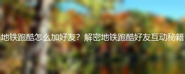 地铁跑酷怎么加好友?解密地铁跑酷好友互动秘籍