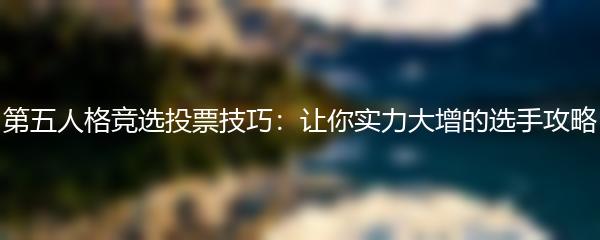 第五人格竞选投票技巧:让你实力大增的选手攻略